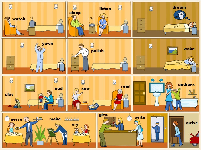 • daily cry daily dream feed give listen make play polish read serve sew sleep undress wake watch work write yawn