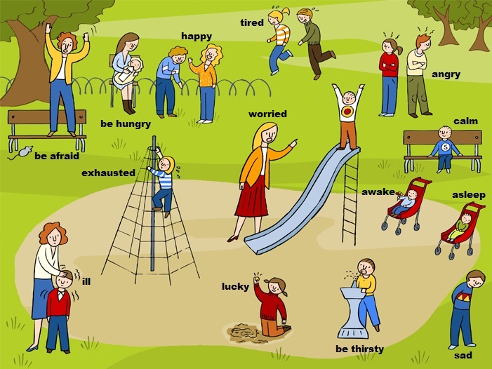 • feeling exhausted feeling happy hungry ill lucky sad tired worried