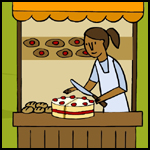 Exemple: The girl is cutting the cake in half. La noia talla el pastís per la meitat.