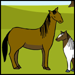 Traducció al català: cavall, cavallsDefinició: Mamífer gros que menja herba, té la cua i la part de darrere del coll amb molts pèls llargs i és criat com a animal domèstic per cavalcar-lo o transportar càrregues.