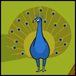 Traducció al català: paó, paonsDefinició: Ocell gros que té una cua amb plomes llargues de color blau i verd que pot obrir com un ventall.
