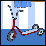 Traducció al català: patinet, patinetsDefinició: Joguina que té una plataforma amb rodetes i un manillar, i que es mou amb impuls d'un peu contra el terra.