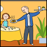 Traducció al català: servirDefinició: Portar el menjar o la beguda a una persona que és a taula.