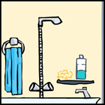 Definició: Aparell i lloc per a prendre un bany dirigint un raig d'aigua sobre el cos.