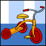 Traducció al català: tricicle, triciclesDefinició: Vehicle que té tres rodes, una al davant i dues al darrere.
