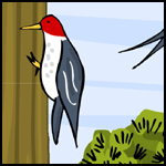 Traducció al català: picot, picotsDefinició: Ocell de mida mitjana i bec fort que fa el niu foradant els troncs dels arbres.