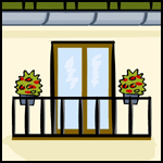 Traducció al català: balcó, balconsDefinició: Plataforma protegida amb una barana que sobresurt de la façana d'un edifici.
