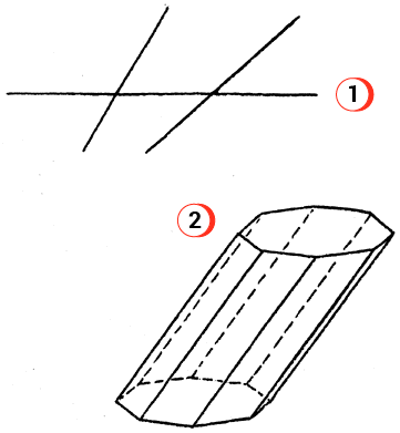 (1) Unes línies obliqües. (2) Un prisma oblic.